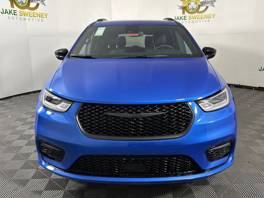 Our 2026 Chrysler Pacifica Select AWD Minivan in Hydro Blue Pearlcoat brings roomy comfort, smart safety, and all-weather confidence to every drive. Motivated by a 3.6 Liter Pentastar V6 offering 287hp to a 9 Speed Automatic transmission for family-friendly performance. This All Wheel Drive minivan is also easy to handle, even with a full-house, and it scores nearly 25mpg on the highway. Our Pacifica rides with distinctive design appeal from LED lighting, fog lamps, power sliding side doors, a power liftgate, and bold alloy wheels.