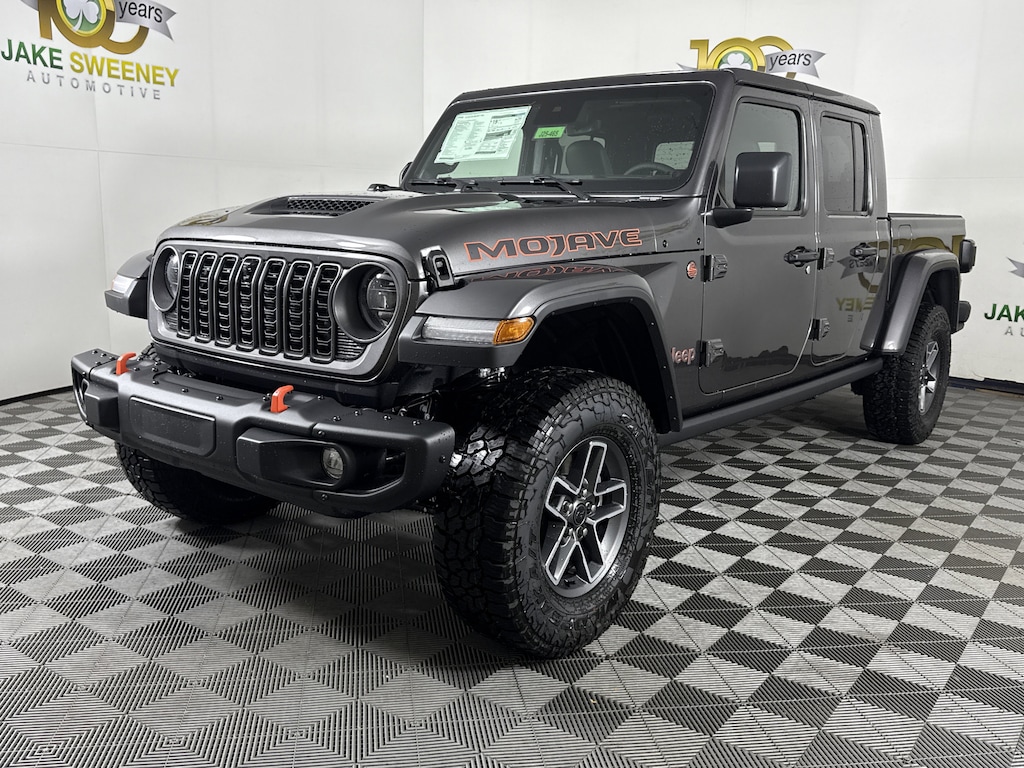 Backed by incredible utility, our 2025 Jeep Gladiator Mojave X 4X4 moves with smart features in Granite Crystal Metallic! Motivated by a 3.6 Liter Pentastar V6 generating 285hp for an 8 Speed Automatic transmission with a trail-friendly Off-Road Plus mode. This Four Wheel Drive truck also boasts heavy-duty Dana axles and Command-Trac 4WD for going even further off-pavement, and it sees nearly 22mpg on the highway. Classic Jeep style comes into view with our Gladiator's bold graphics, orange accents, LED lighting, fog lamps, a performance hood, steel rock rails/bumpers, a padded sport bar, alloy wheels, and a removable hard top to complement removable doors.