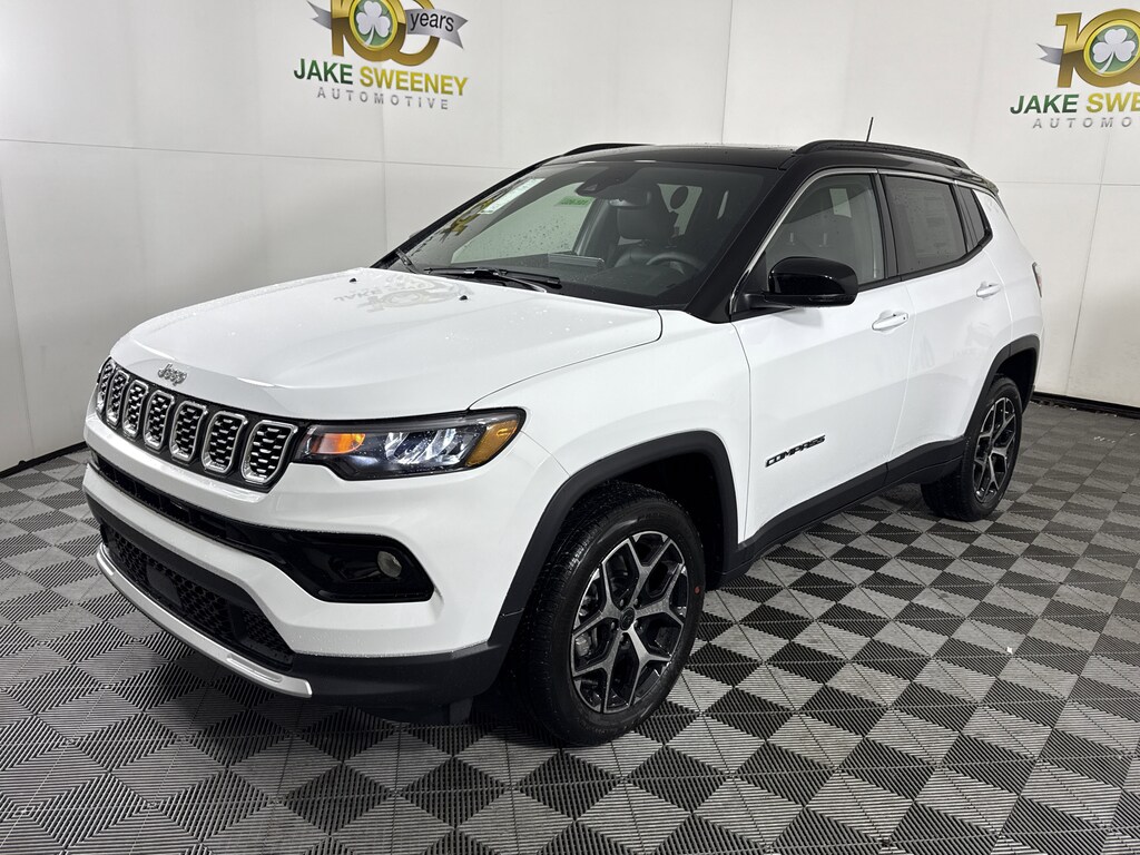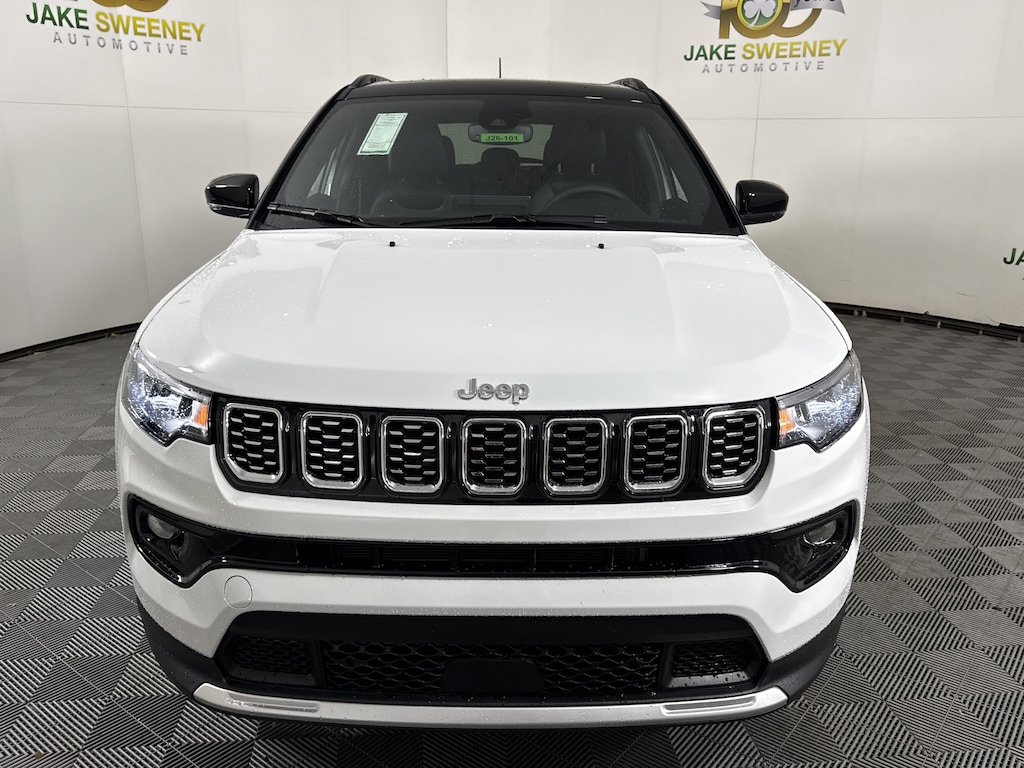 Comfortably equipped, our 2026 Jeep Compass Limited 4X4 with the Sun & Sound Package lets you enjoy iconic adventure performance in Bright White! Powered by a TurboCharged 2.0 Liter 4 Cylinder providing 200hp to an 8 Speed Automatic transmission for confident strength. This Four Wheel Drive SUV is also ready to run free with Selec-Terrain terrain management and returns nearly 32mpg on the highway. A gloss-black roof creates an eye-catching two-tone look to complement our LED lighting, fog lamps, roof rails, 18-inch alloy wheels, a dual-pane panoramic sunroof, and gloss-black mirror caps.