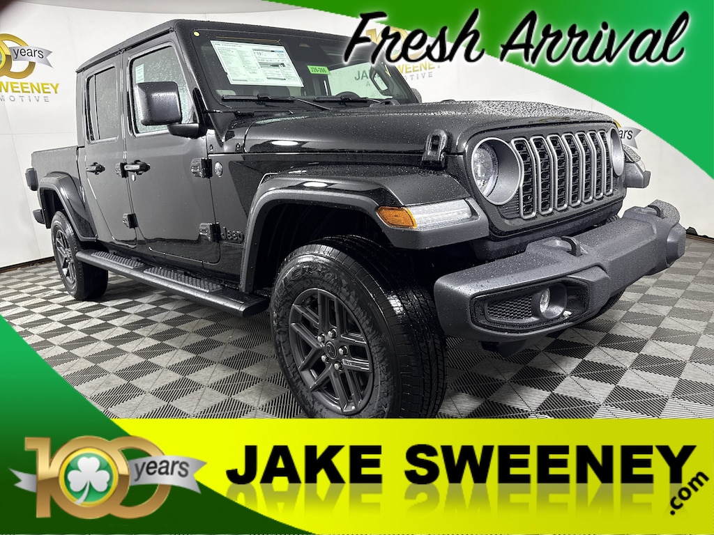 Our well-equipped 2026 Jeep Gladiator Sport S 4X4 inspires confidence in Black. Motivated by a 3.6 Liter Pentastar V6 serving up 285hp to an 8 Speed Automatic transmission with a Selec-Terrain multimode drive system. This Four Wheel Drive truck returns nearly 22mpg on the highway and shines off-road. That's where you can take advantage of heavy-duty axles and Command-Trac 4WD to push this machine to the limit. Our Gladiator shows how form follows function with alloy wheels, fog lamps, skidplates, a Class II bumper hitch, heated power mirrors, a padded sportbar, and a removable top.