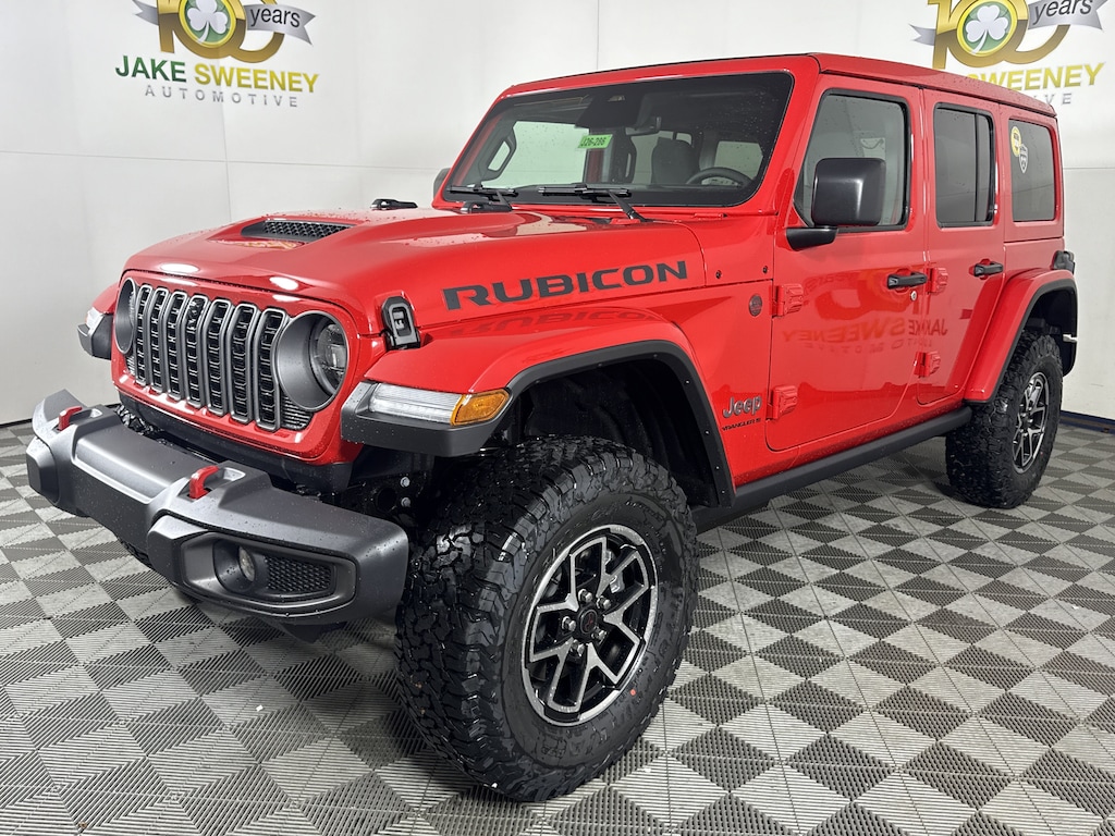 Explore more in our 2026 Jeep Wrangler Rubicon 4 Door 4X4 with the Convenience Package that's a fierce adventure machine in Firecracker Red! Powered by a 3.6 Liter Pentastar V6 supplying 285hp to an 8 Speed Automatic transmission protected by a robust skid plate. Locking differentials and Rock-Trac heavy-duty 4WD help you tame wild terrain, and this Four Wheel Drive SUV returns nearly 20mpg on the highway. Our Wrangler is ready to ride with LED lighting, fog lamps, a removable top, bold graphics, black alloy wheels, a performance hood, Sky One-Touch power top, and a fold-down windshield with Gorilla Glass.