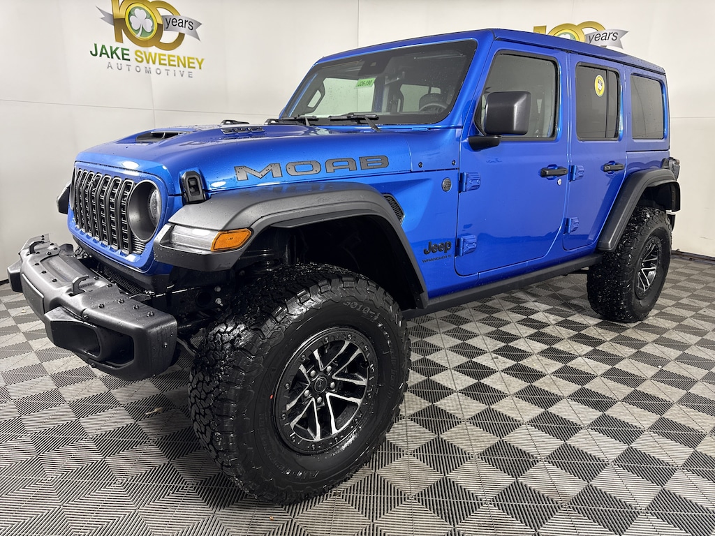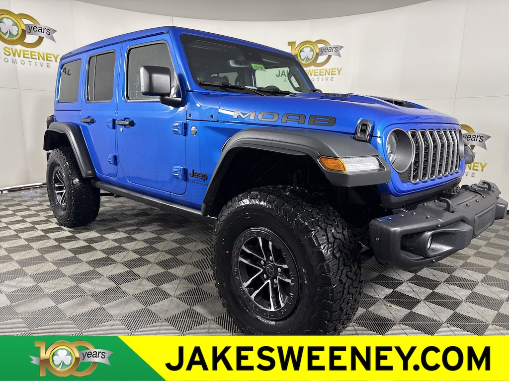 Fire up our 2026 Jeep Wrangler Moab 392 4X4 to discover a ferocious freedom machine in Hydro Blue Pearlcoat! Motivated by a 6.4 Liter SRT HEMI V8 offering 470hp to a paddle-shifted 8 Speed Automatic transmission for high-performance capability. Tru-Lok axles help you push your boundaries off the beaten path, and this Four Wheel Drive SUV achieves nearly 16mpg on the highway. Bold details help bring out the best in our Wrangler, which showcases LED lighting, fog lamps, a removable three-piece hardtop, extended fender flares, beadlock-capable alloy wheels, exclusive badging, a hood scoop, and steel bumpers.