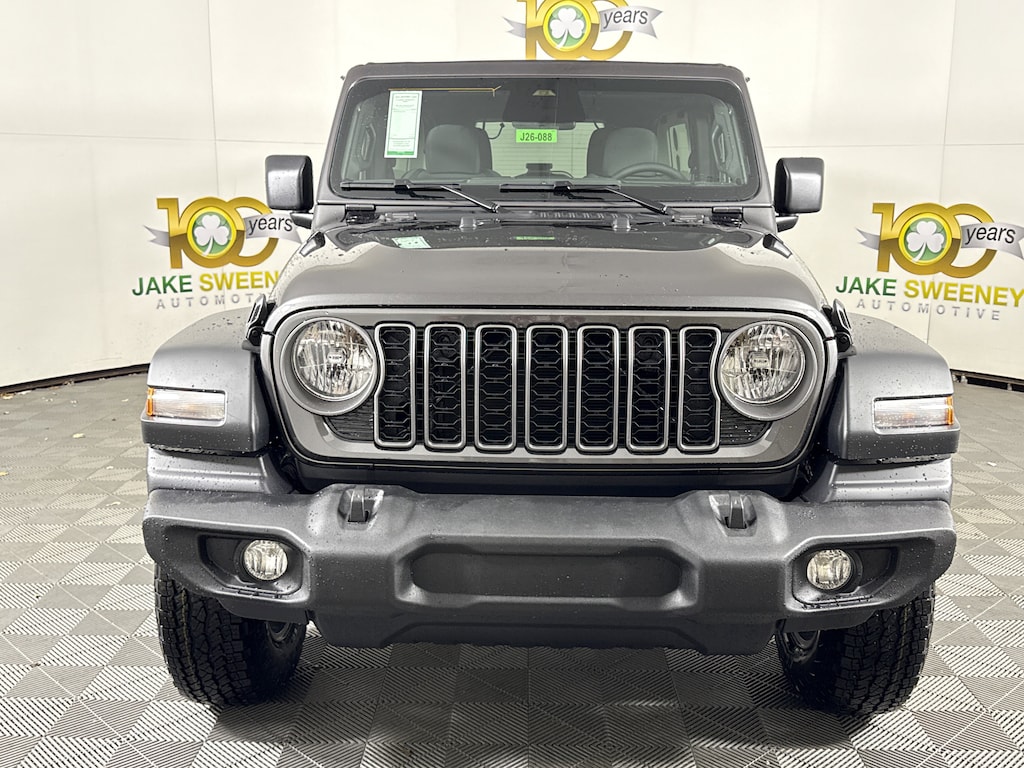 Armed with modern confidence, our 2026 Jeep Wrangler Sport S 4 Door 4X4 is ready to make its move in Granite Crystal Metallic! Motivated by a TurboCharged 2.0 Liter 4 Cylinder serving up 270hp to an 8 Speed Automatic transmission for athletically inclined performance on the road or off. This Four Wheel Drive SUV grabs the ground with impressive grip, boasts Dana axles for rugged capability, and achieves nearly 24mpg on the highway. Join the Jeep club today to start showing off our Wrangler's removable top/doors, alloy wheels, robust skid plates, bold fender flares, tow hooks, and heated power mirrors.
