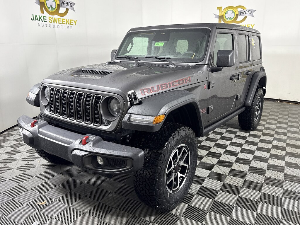 Our rugged 2026 Jeep Wrangler Rubicon 4 Door 4X4 with the Convenience Package can unlock a higher level of adventure in Granite Crystal Metallic! Powered by a 3.6 Liter Pentastar V6 supplying 285hp to an 8 Speed Automatic transmission protected by a robust skid plate. Locking differentials and Rock-Trac heavy-duty 4WD help you tame wild terrain, and this Four Wheel Drive SUV returns nearly 20mpg on the highway. Our Wrangler is ready to ride with LED lighting, fog lamps, a removable top, bold graphics, black alloy wheels, a vented hood, and a fold-down windshield with Gorilla Glass.