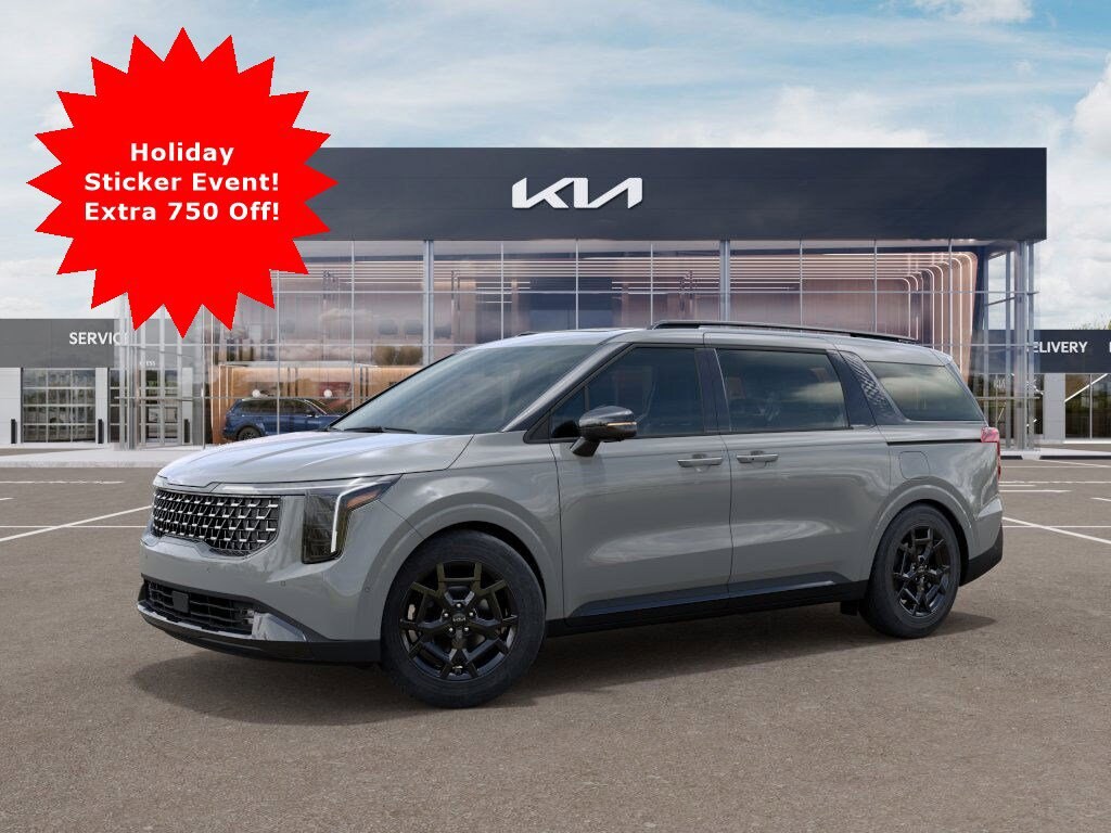 Our proud 2025 Kia Carnival SX Prestige MPV blends premium comfort and flexible design in Ceramic Silver! Motivated by a 3.5 Liter V6 supplying 290hp to an 8 Speed Automatic transmission to inspire confidence when you're on the move. This Front Wheel Drive multipurpose vehicle also sees nearly 26mpg on the highway with an aggressive SUV-style design. Highlights include dual sunroofs, LED lighting, fog lamps, a hands-free liftgate, power sliding side doors, roof rails, Satin Chrome skid plates, matching accents, and gloss-black wheels.
