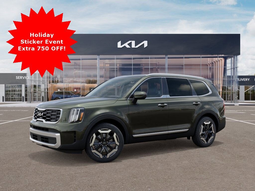 Upgrade your drive to our 2025 Kia Telluride S AWD in Dark Moss! Powered by a 3.8 Liter V6 delivering 291hp to an 8 Speed Automatic transmission, so there's plenty of muscle under the hood. This All Wheel Drive SUV inspires confidence with its composed handling and achieves nearly 24mpg on the highway. Rugged and refined, our Telluride takes on your days in style with LED lighting, 20-inch alloy wheels, roof rails, a rear spoiler, matte-black body cladding, Satin Chrome accents, and heated power mirrors with built-in turn signals.