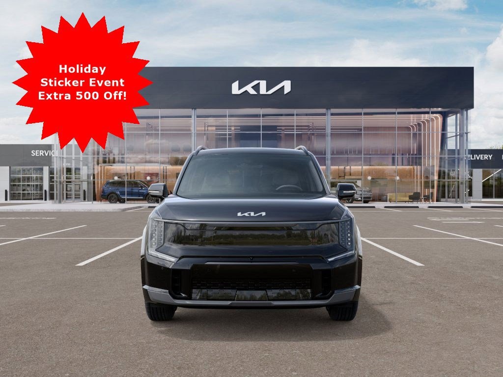 Taking style to the next level, our electric 2026 Kia EV9 GT-Line AWD is brought to you in Black! Motivated by Dual Electric Motors providing a combined 379hp to a Single Speed Automatic transmission with a boost button for a short-term shot of extra muscle on demand. Also capable on the road or trail, this All Wheel Drive SUV carries a 99.8kWh battery pack for nearly 270 miles of EV range and can be an onboard generator. Rugged styling is standard with dual sunroofs, bold LED lighting, 21-inch alloy wheels, digital-pattern grille lighting, aggressive GT-Line accents, and a hands-free liftgate.