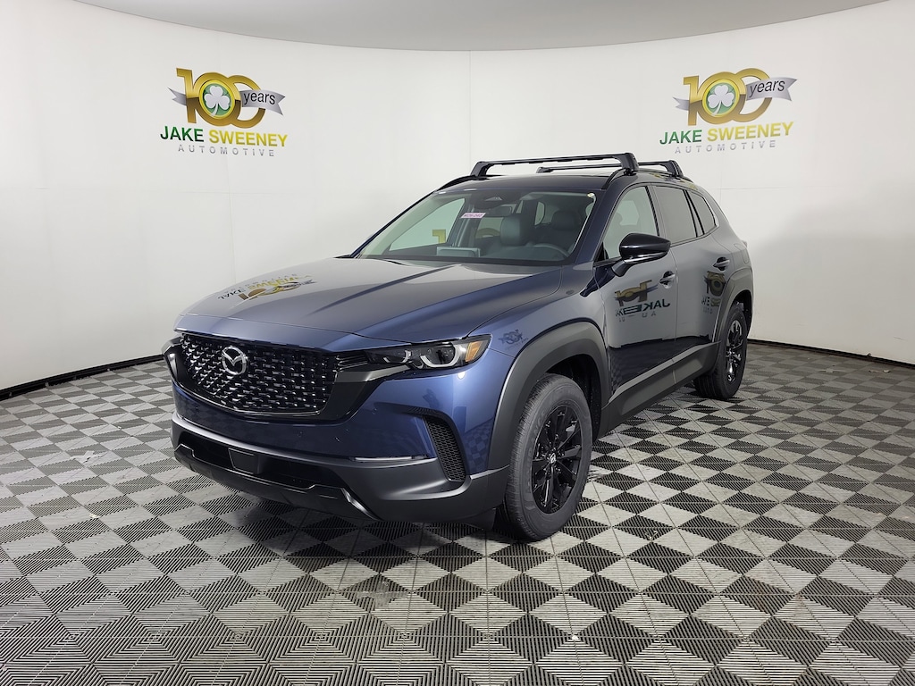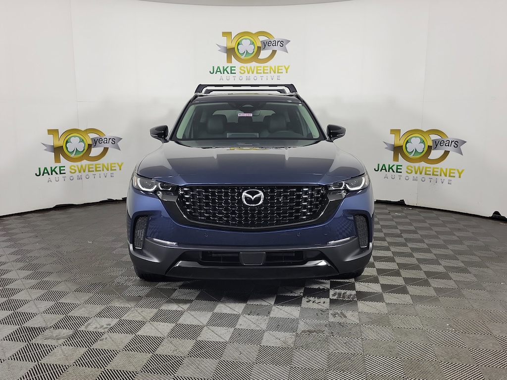 The sporty styling of our 2026 Mazda CX-50 Hybrid Premium eAWD looks fantastic in Ingot Blue Metallic! Powered by a 2.5 Liter 4 Cylinder paired with three Electric Motors for a combined 219hp to an advanced CVT with multiple drive modes. Thanks to the responsive suspension, you can seek out twisty back roads confidently, and this All Wheel Drive SUV scores nearly 38mpg on the highway. Bold and sophisticated, our Premium features adaptive front LED lighting, a power liftgate, heated power mirrors, dual exhaust outlets, and eye-catching alloy wheels.