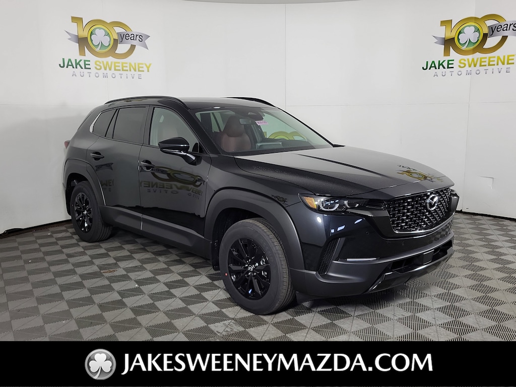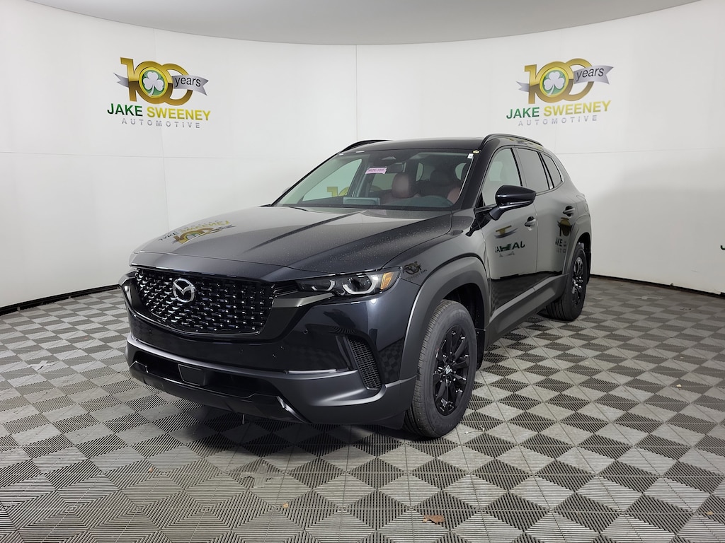 The sporty styling of our 2026 Mazda CX-50 Hybrid Premium eAWD looks fantastic in Jet Black Mica! Powered by a 2.5 Liter 4 Cylinder paired with three Electric Motors for a combined 219hp to an advanced CVT with multiple drive modes. Thanks to the responsive suspension, you can seek out twisty back roads confidently, and this All Wheel Drive SUV scores nearly 38mpg on the highway. Bold and sophisticated, our Premium features adaptive front LED lighting, a power liftgate, heated power mirrors, dual exhaust outlets, and eye-catching alloy wheels.