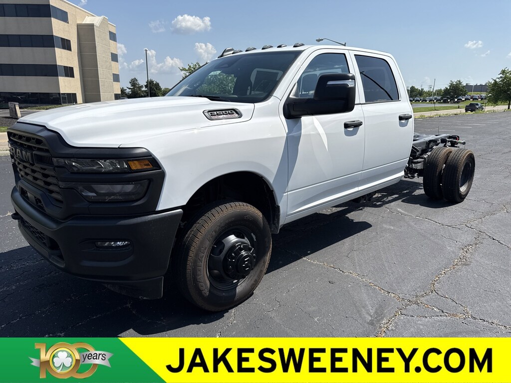 Our 2025 RAM 3500 Tradesman Crew Cab 4X2 in Bright White is ready for all your needs! Motivated by a 6.4 Liter HEMI V8 providing 405hp to an 8 Speed Automatic transmission for work-ready muscle ready to move. An anti-spin rear differential and HD shocks are standard for sure-footed performance when handling big loads, and this Rear Wheel Drive truck blends that bold power with proud style. Our RAM 3500 is smartly equipped with LED lighting, fog lamps, telescoping trailer mirrors, and a Class V hitch receiver.
