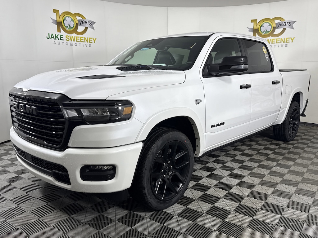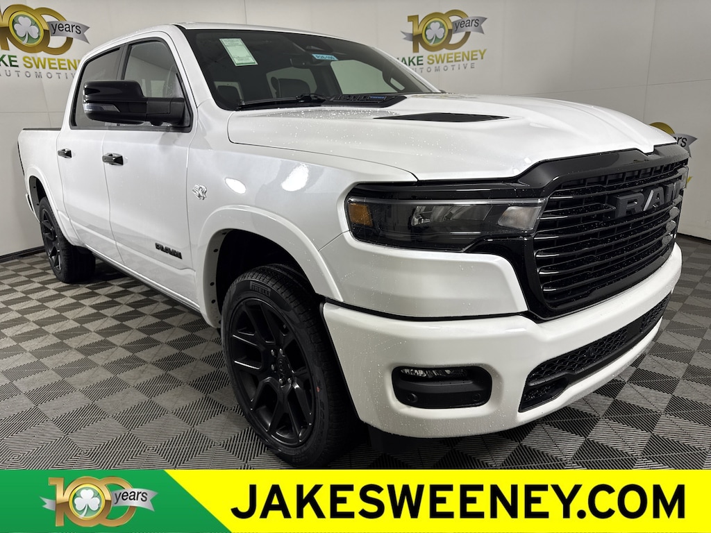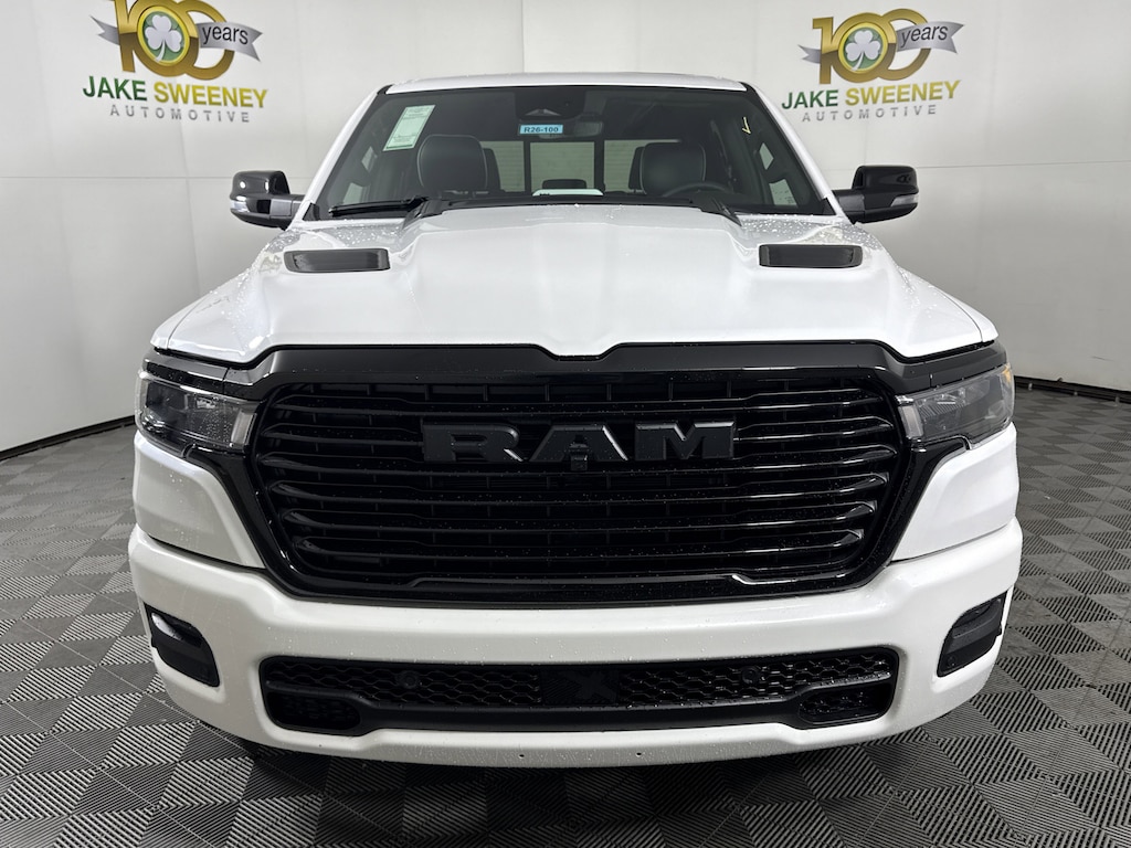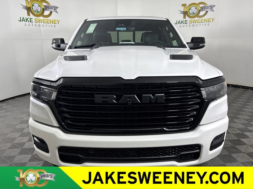Built with HEMI strength, our 2026 RAM 1500 Laramie Crew Cab 4X4 Night Edition with the Level 2 Equipment Group is bold in Ivory White Tri-Coat Pearl and delivers confident towing and everyday capability. Powered by a 5.7 Liter eTorque HEMI V8 with a 48V Mild-Hybrid system delivering 395hp to an 8 Speed Automatic transmission for dealing with heavy trailers and large payloads. This Four Wheel Drive truck is also easy to handle in town and sees nearly 24mpg on the highway. A high-capability head-turner, our RAM showcases LED lighting, fog lamps, stylish fender flares, the Night Edition's 22-inch wheels, a sport performance hood, power running boards, body-colored bumpers, a Class IV hitch receiver, heated power-fold mirrors, and a 400W inverter.