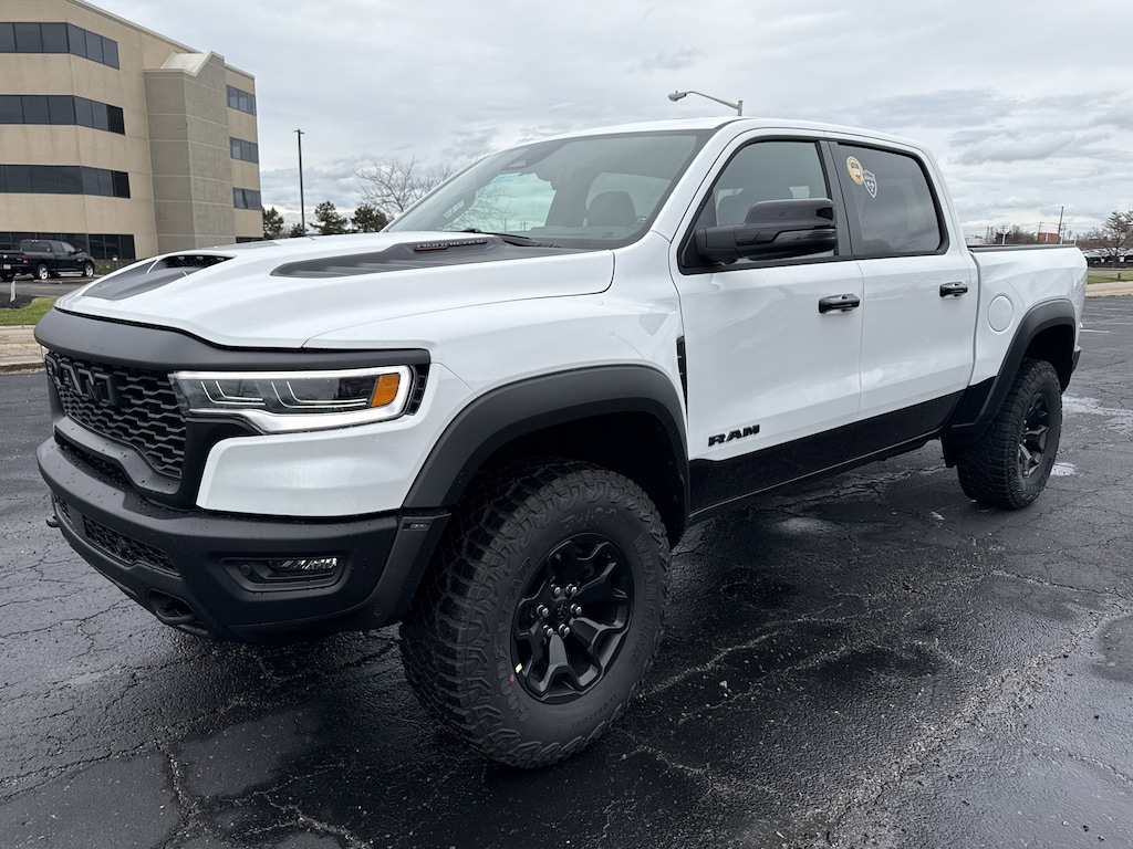 Engineered for extremes, our 2026 RAM 1500 RHO Crew Cab 4X4 with the Level 1 Equipment Package in Bright White dominates trails with hardcore off-road confidence. Powered by a Twin-TurboCharged 3.0 Liter High Output Hurricane 6 Cylinder generating 540hp for an 8 Speed Automatic transmission with nine drive modes. Returning 16mpg on the highway, this Four Wheel Drive truck is a fearless trail machine with a high-speed E-Locker rear axle, an exclusive long-travel suspension, and extra ground clearance. Extra bold, our RAM's exterior showcases LED lighting, front/rear tow hooks, a dual-pane panoramic sunroof, almost 12 inches of clearance, underbody skid plates, Bilstein Black Hawk adaptive suspension, off-road fender flares, power tailgate, bedliner, black painted wheels, 35-inch tires, a performance hood, and a powder-coated front bumper.