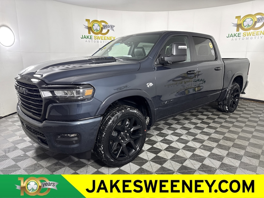 With mild-hybrid HEMI strength, our 2026 RAM 1500 Laramie Crew Cab 4X4 in Forged Blue Metallic delivers confident towing and everyday capability. Powered by a 5.7 Liter eTorque HEMI V8 with a 48V Mild-Hybrid system delivering 395hp to an 8 Speed Automatic transmission for dealing with heavy trailers and large payloads. This Four Wheel Drive truck is also easy to handle in town and sees nearly 24mpg on the highway. A high-capability head-turner, our RAM shows off LED lighting, fog lamps, stylish fender flares, 20-inch wheels, a sunroof, a Class IV hitch receiver, heated power-fold mirrors, and a 400W inverter.