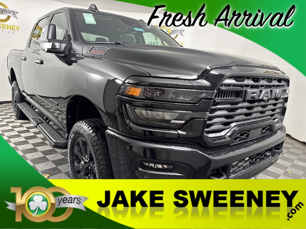 With HEMI-muscle and confidence, our 2026 RAM 2500 Big Horn Crew Cab 4X4 in Diamond Black Crystal Pearl makes light work of heavy hauls. Powered by a 6.4 Liter HEMI V8 serving up 405hp to an 8 Speed Automatic transmission. A heavy-duty suspension is standard for composed handling under heavy loads, and this Four Wheel Drive truck answers the call of duty with compelling good looks. Check out the LED lighting, fog lamps, alloy wheels, and Level 2 Plus upgrades like a Mopar bed step, a Mopar spray-in bedliner, heated power-folding trailer mirrors, and an anti-spin rear differential.