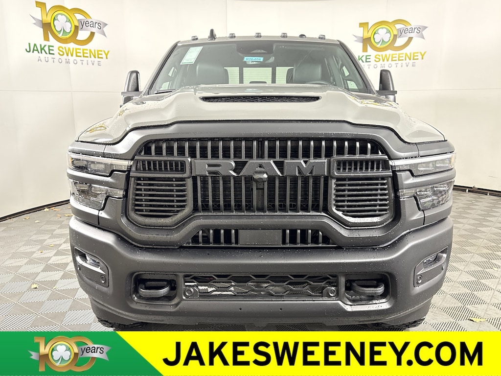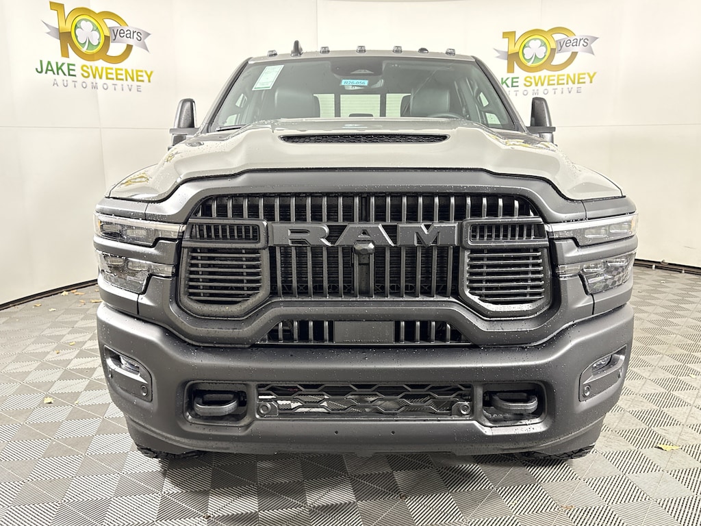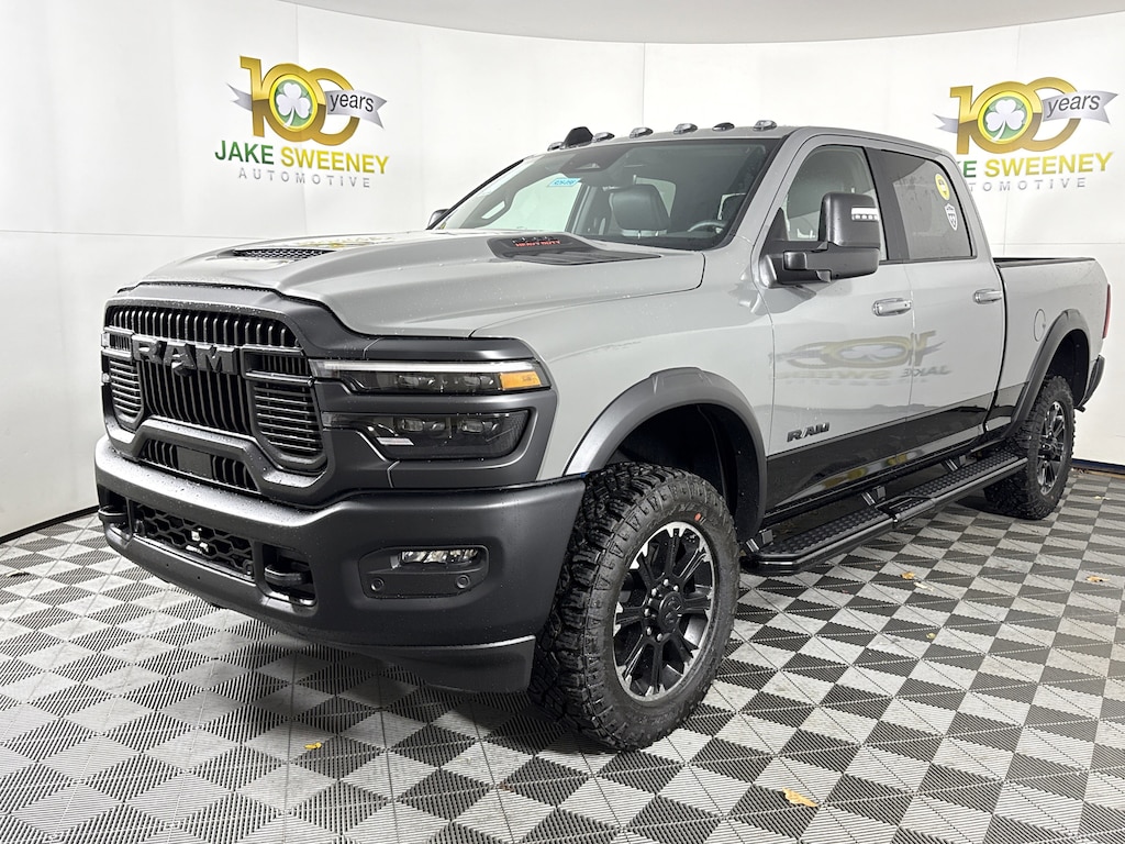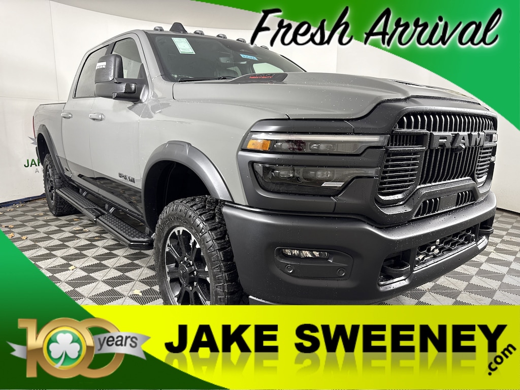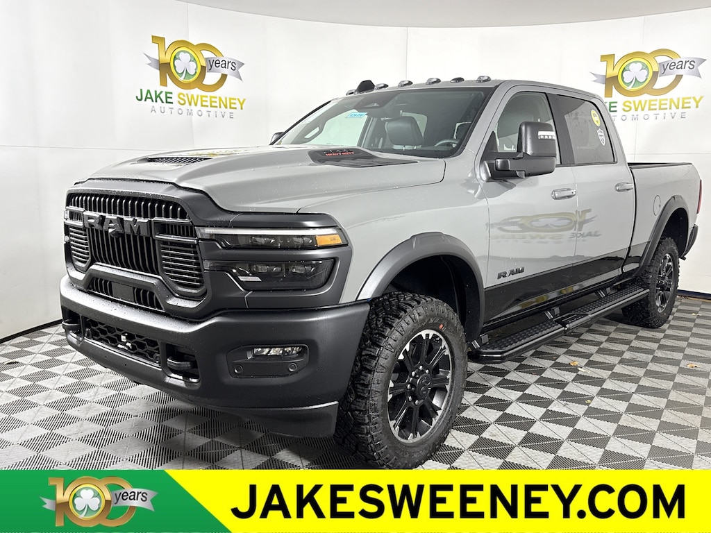 Bold design meets serious strength in our 2026 RAM 2500 Rebel Crew Cab 4X4 in Ceramic Grey Clearcoat, built to stand out on the road or off. Motivated by a 6.4 Liter HEMI V8 supplying 405hp to an 8 Speed Automatic transmission. A rugged Rebel suspension, hill-descent control, and electronic limited-slip differential raise the bar for off-road performance, and this Four Wheel Drive truck features a trail-ready exterior. Check out the LED lighting, fog lamps, Mopar sport hood, powder-coated bumpers, black alloy wheels, matching fender flares, multifunction trailering mirrors, a 115V/400W outlet, and a Class V receiver hitch.