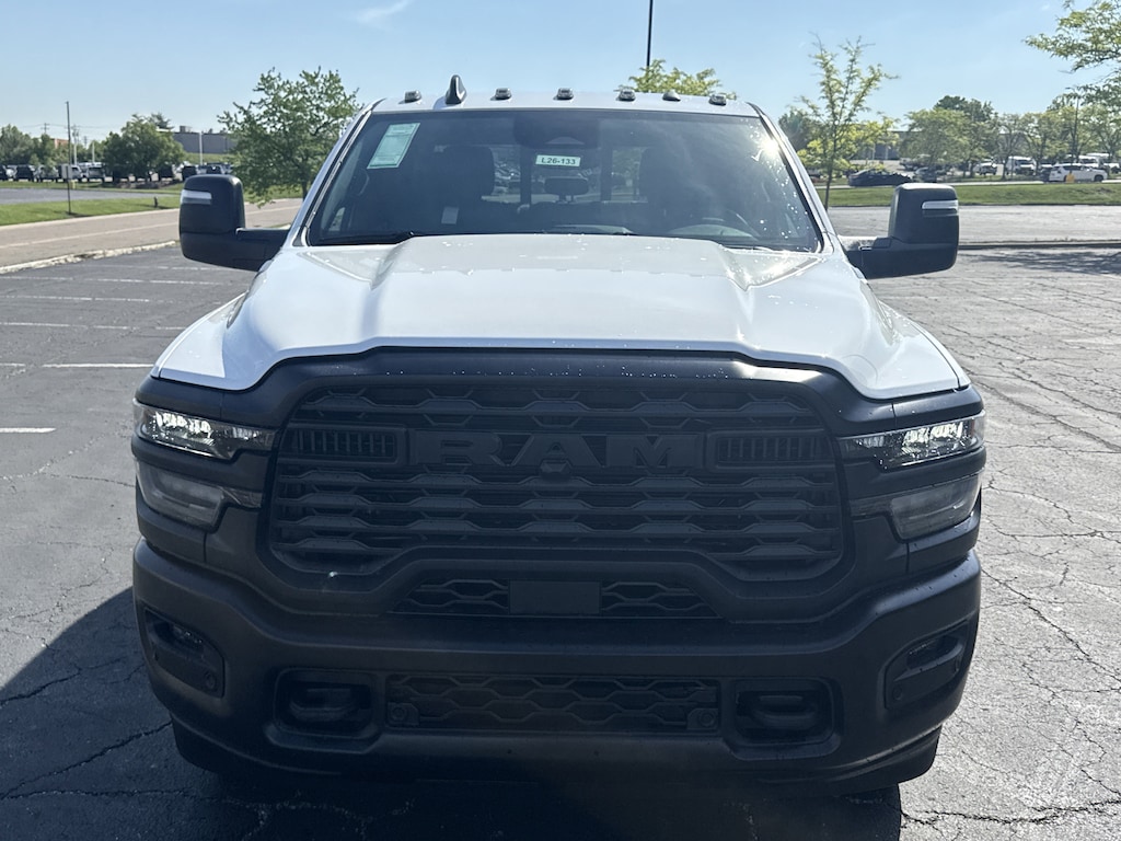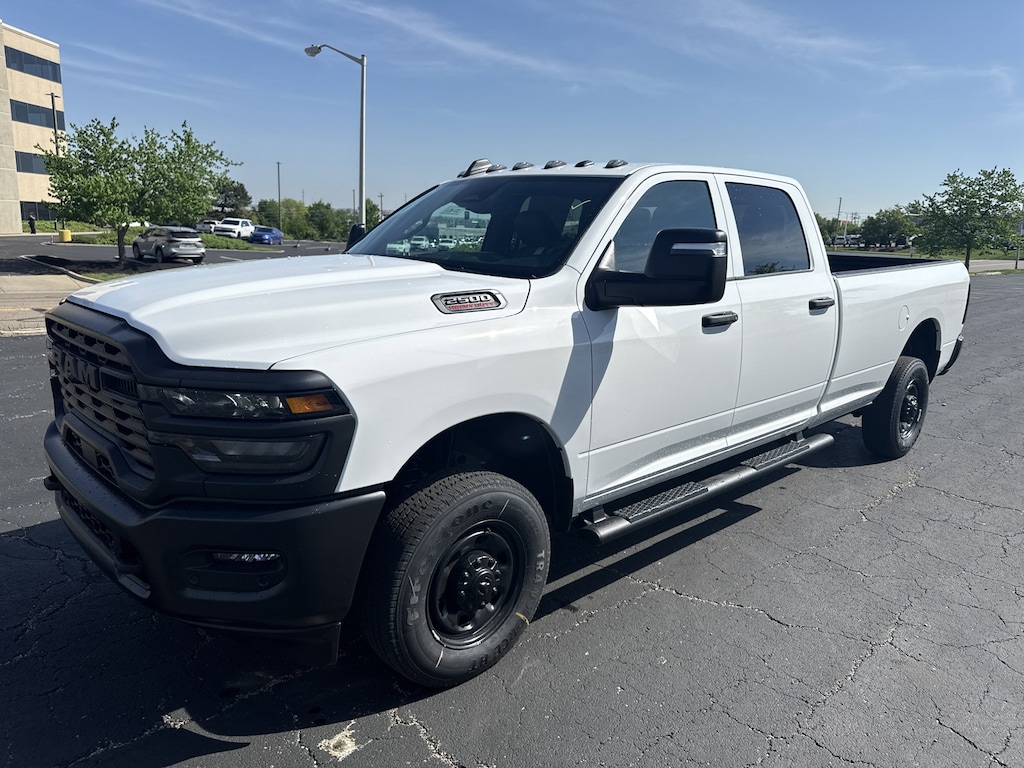 Our mighty 2026 RAM 2500 Tradesman Crew Cab 4X4 is built to help meet the demands of your day with the Level 1 Equipment Package in Bright White. Powered by a 6.4 Liter HEMI V8 offering 410hp matched to an 8 Speed Automatic transmission for commercial-strength capability. This Four Wheel Drive truck inspires confidence with its robust suspension and turns heads with its rugged appearance. Our RAM has a purposeful look, enhanced by an LED hitch light, a Class V receiver hitch, heated power telescoping mirrors, power sliding rear window, black tubular side steps, bedliner, quad halogen headlights, and aggressive black details.