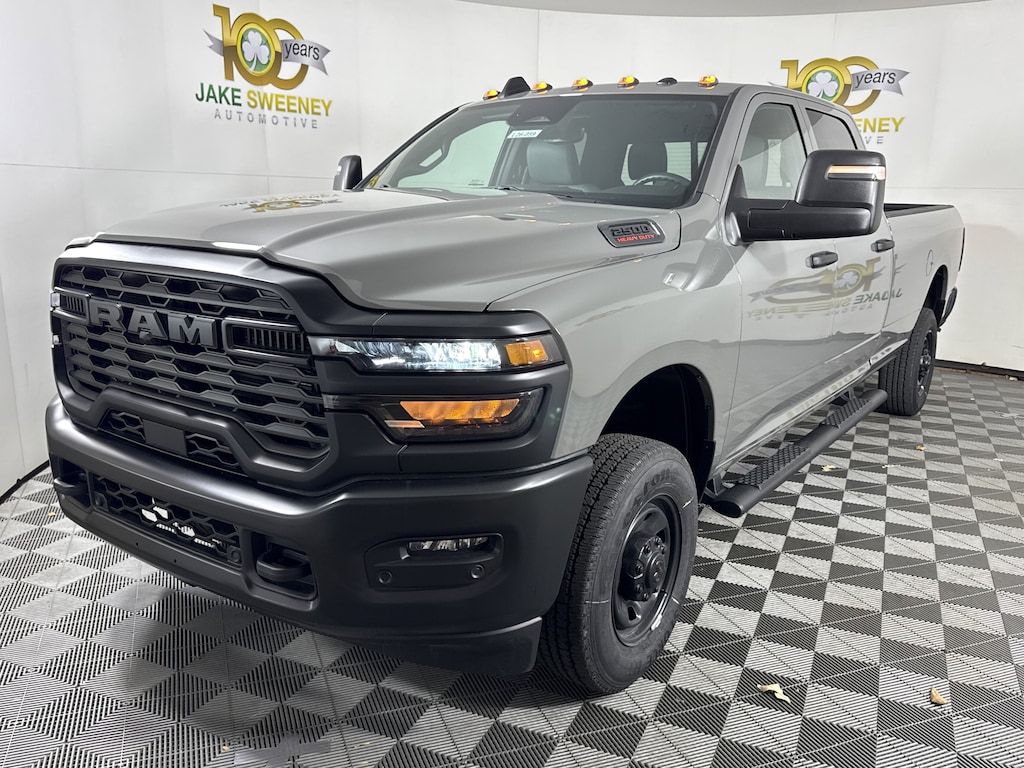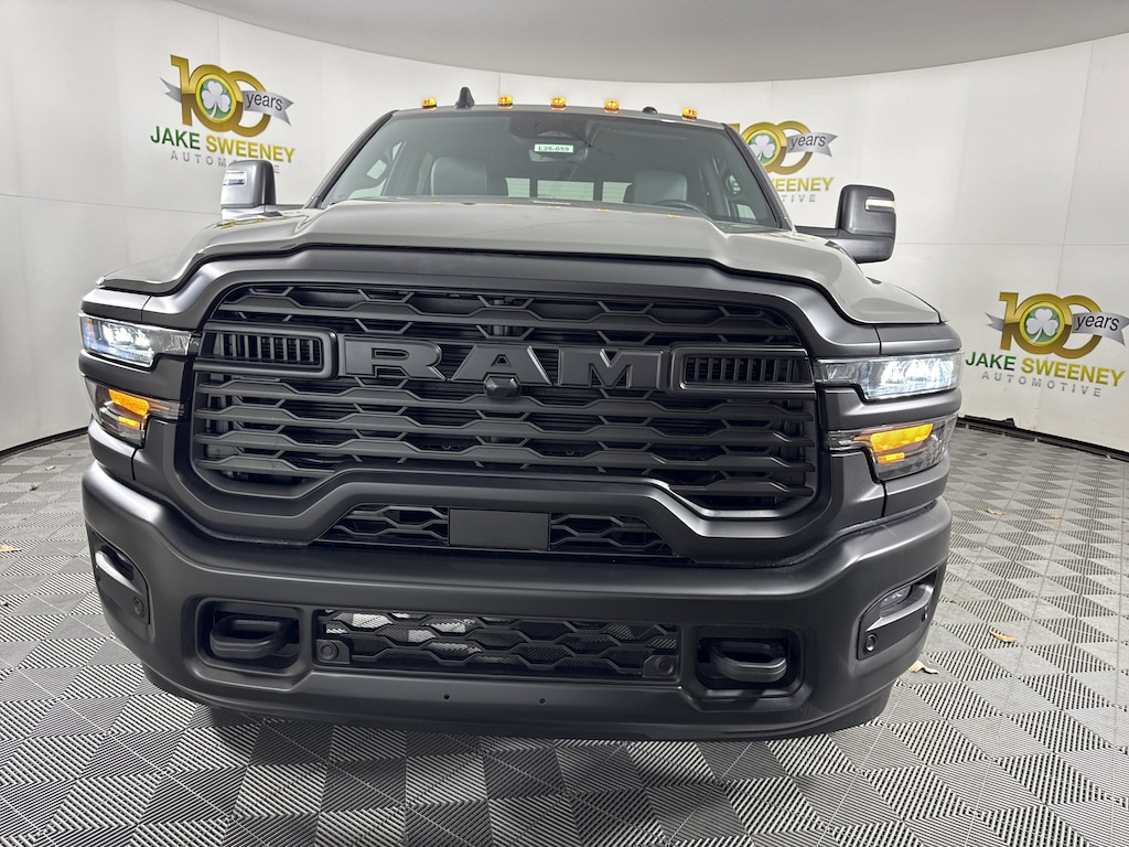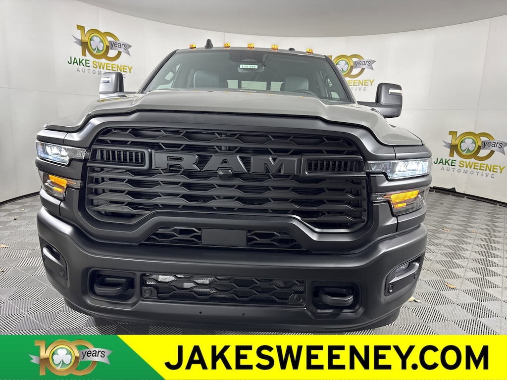 Built to conquer, our 2026 RAM 2500 Tradesman Crew Cab 4X4 in Ceramic Grey Clearcoat is ready for long days and demanding jobs. Powered by a 6.4 Liter HEMI V8 offering 410hp matched to an 8 Speed Automatic transmission for commercial-strength capability. This Four Wheel Drive truck inspires confidence with its robust suspension and turns heads with its rugged appearance. Our RAM has a purposeful look, enhanced by an LED hitch light, a Class V receiver hitch, a spray-in bedliner, telescoping mirrors, quad halogen headlights, and aggressive black details.