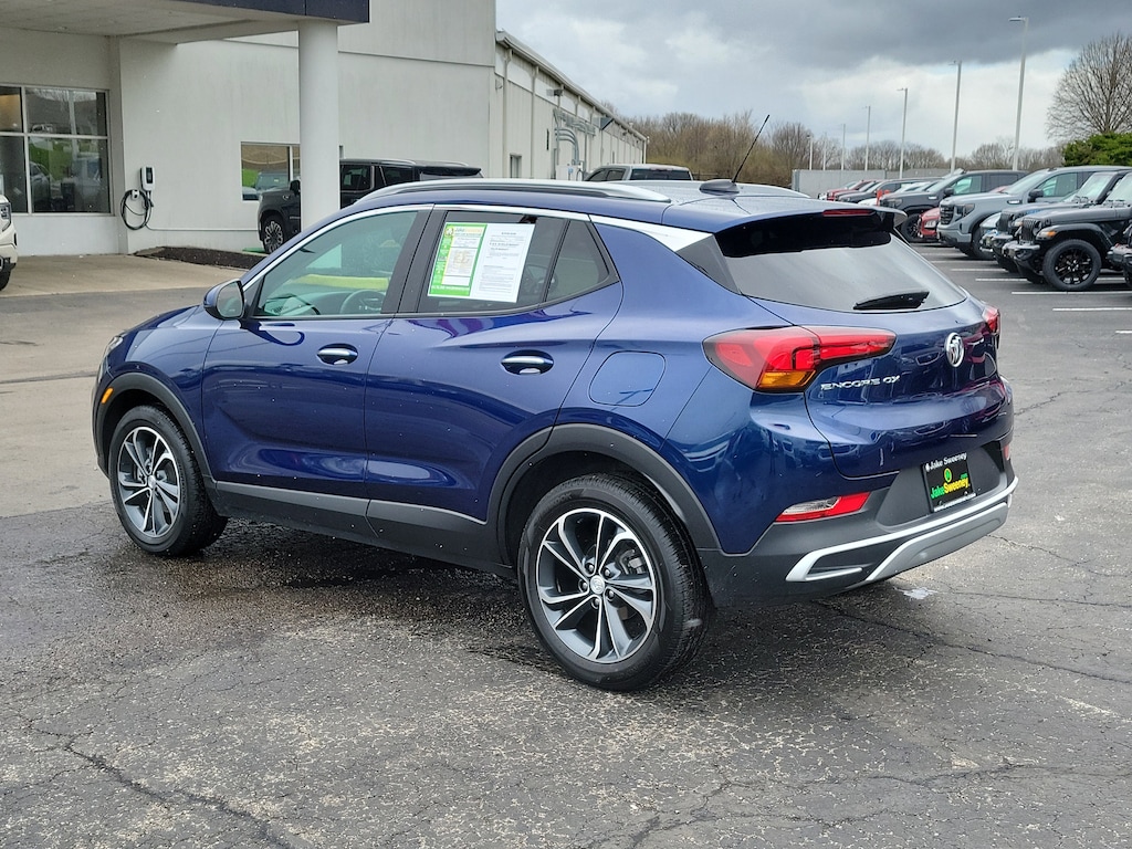 Have you ever wondered where to buy a Certified used car? Look no further! Jake Sweeney is here to Help. If you are in need of a new or used vehicle, we are offering you the ability to shop online and have your vehicle delivered to your home. Come visit us in store as well for a fun, fast, and easy car buying experience! Sapphire Metallic 2023 Buick Encore GX Select FWD CVT ECOTEC 1.2L Turbo 18" Machined Aluminum Wheels, 2 USB Ports w/Auxiliary Input Jack, 4-Way Manual Passenger Seat Adjuster, 6 Speakers, Air Conditioning, Alloy wheels, AM/FM radio: SiriusXM, Auto High-beam Headlights, Automatic temperature control, Brake assist, Cloth w/Leatherette Seat Trim, Delay-off headlights, Electronic Stability Control, Enhanced Performance 6-Speaker System, Front Bucket Seats, Front Center Armrest, Front dual zone A/C, Front fog lights, Fully automatic headlights, Heated Driver & Front Passenger Seats, Illuminated entry, Preferred Equipment Group 1SD, Radio data system, Radio: 8" Diagonal Buick Infotainment System, Rear window defroster, Ride & Handling Suspension, SiriusXM Radio, Speed-sensing steering, Telescoping steering wheel, Traction control, Wireless Apple CarPlay/Wireless Android Auto.