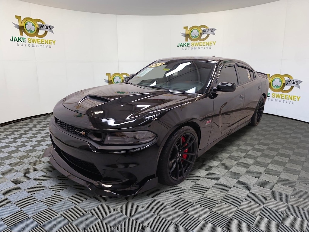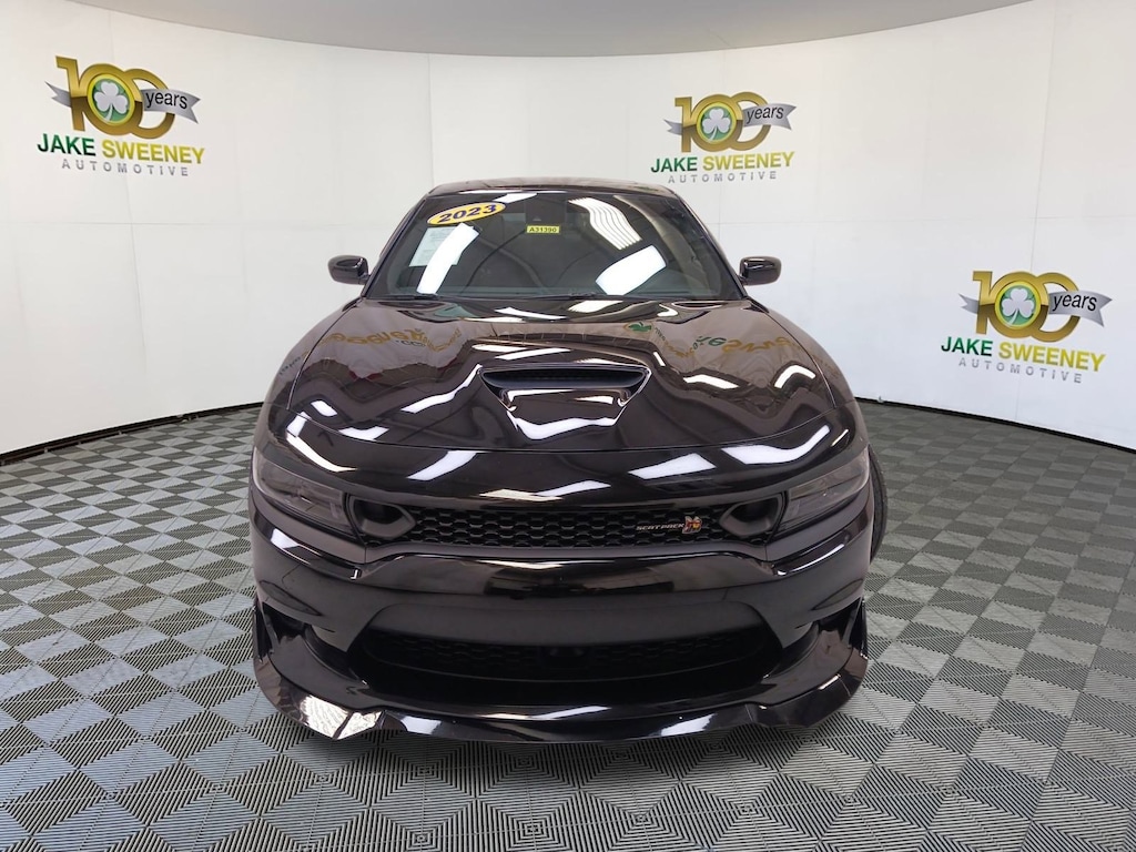 Our aggressive No Accidents Reported 2023 Dodge Charger Scat Pack Sedan Daytona Edition with the Dynamics Pack is waiting for you at the starting line in Pitch Black! Powered by a 6.4 Liter 392 HEMI V8 generating 485hp to an 8 Speed Automatic transmission for a roaring soundtrack and remarkable thrills. This Rear Wheel Drive sedan also has our Dynamics Pack to add an adaptive damping suspension and upgraded front Brembo brakes for incredible handling, and it returns nearly 24mpg on the highway. Just prepare for stares, as our Charger showcases LED lighting, fog lamps, a functional hood scoop, a performance grille, a black rear spoiler, active exhaust with dual outlets, bold graphics, a power sunroof, and 20-inch alloy wheels.