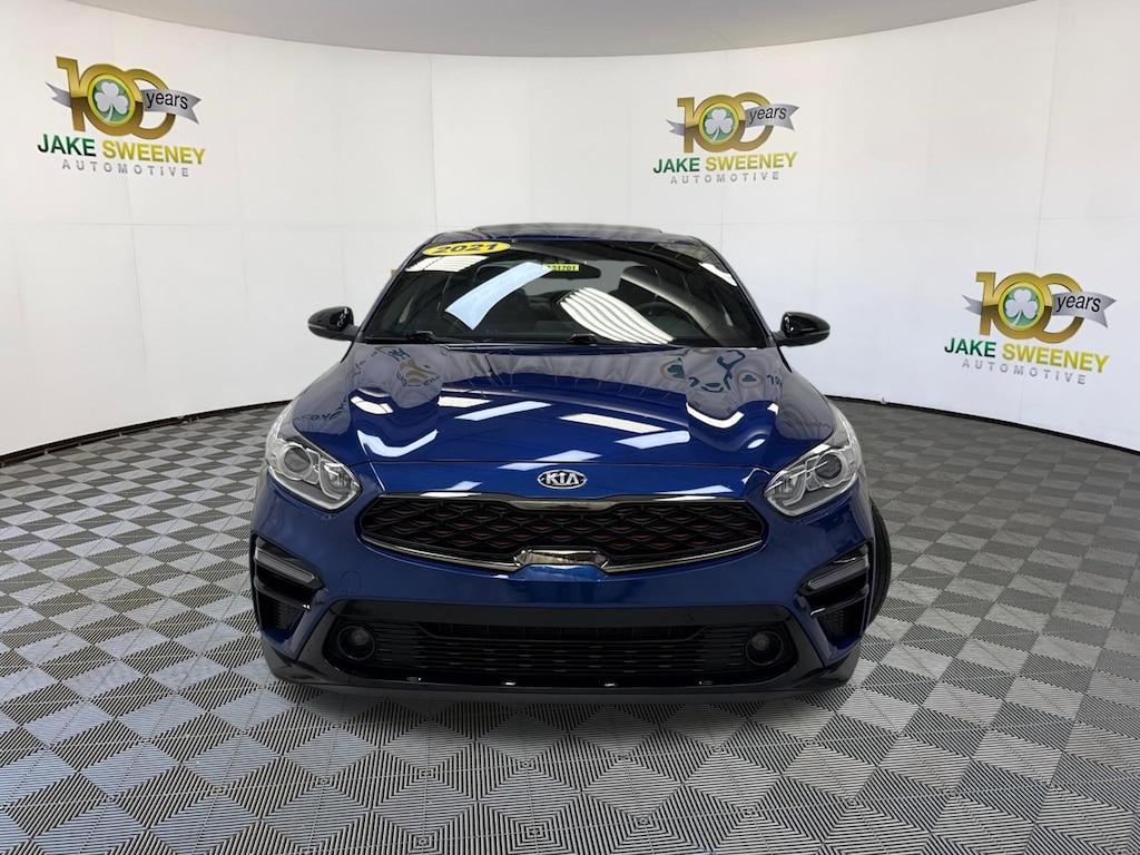 Our dynamic 2021 Kia Forte GT-Line Sedan is for the winner within and looks especially sporty with its bold Deep Sea Blue finish! Powered by a 2.0 Liter 4 Cylinder offering 147hp connected to an intelligent CVT. This Front Wheel Drive sedan can also see nearly 40mpg on the highway, and it's ready to spice up your life with athletic good looks. Our Forte features LED lighting, fog lamps, bold alloy wheels, a sunroof, side sills, and a rear spoiler, all set off by gloss-black accents and a hands-free trunk for convenience.