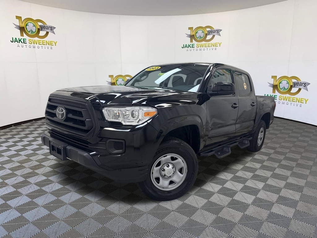 A wise choice, our 2023 Toyota Tacoma SR Double Cab 4X4 is here to help on your next drive in Black! Powered by a 3.5 Liter V6 that generates 278hp connected to a 6 Speed Automatic transmission for spirited performance. This Four Wheel Drive truck also comes standard with an automatic limited-slip differential for enhanced control and returns nearly 22mpg on the highway. You can tell the world you're serious about trucking with our Tacoma's robust design, heated power mirrors, front skid plates, step bars, a Class IV hitch receiver, and a rugged composite bed.