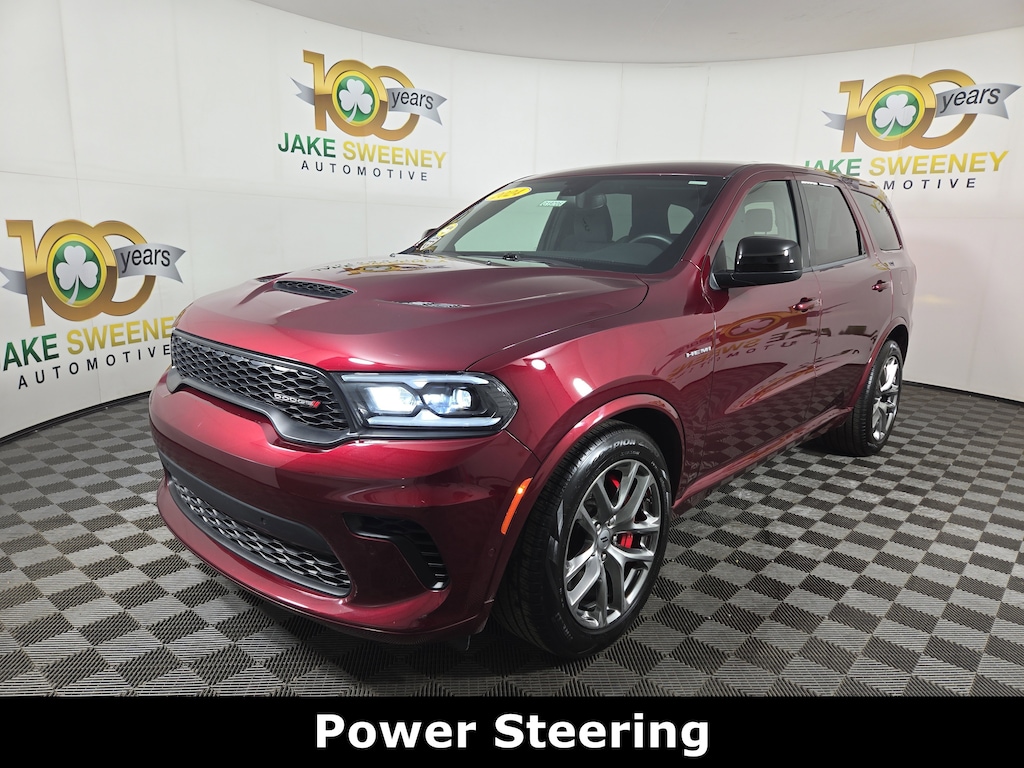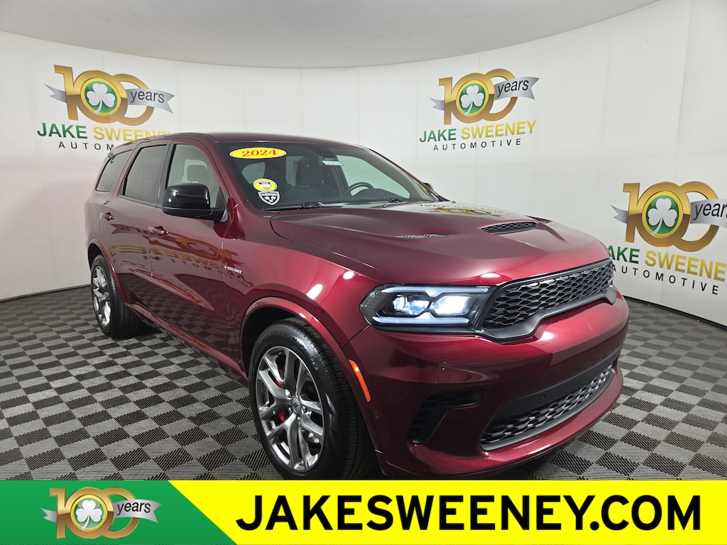 Jake Sweeney Is Here to Help! If you are in need of a new or used vehicle, we are offering you the ability to shop online and have your vehicle delivered to your home. Octane Red Pearlcoat 2024 Dodge Durango R/T AWD 8-Speed Automatic HEMI 5.7L V8 Multi Displacement VVT REMAINDER OF FACTORY WARRANTY, LIFETIME POWERTRAIN WARRANTY, AWD, 145 mph Maximum Speed Calibration, 160 mph Primary Speedometer, 7 & 4 Pin Wiring Harness, Active Noise Control System, Adaptive Damping, Automatic Headlamp Leveling System, Blind Spot w/Trailer Detection, Brembo Brakes w/SRT Performance Pad, Class IV Receiver Hitch, Electronic Limited Slip Differential Rear Axle, High Perform Suspension, High Performance Exhaust, LED Auxiliary Low Beam & Turn Signal, Performance Tuned Steering, Quadra-Trac Active-on-Demand 4WD, Quick Order Package 22S R/T, Run Flat Tires, Sport/Track/Tow/Snow Drive Modes, Tow 'N Go Package (DISC), Trailer Brake Control, Upper/Lower Body Color Rear Fascia, Wheels: 20" x 10" Hyper Black Aluminum (DISC).Recent Arrival! Odometer is 3375 miles below market average!