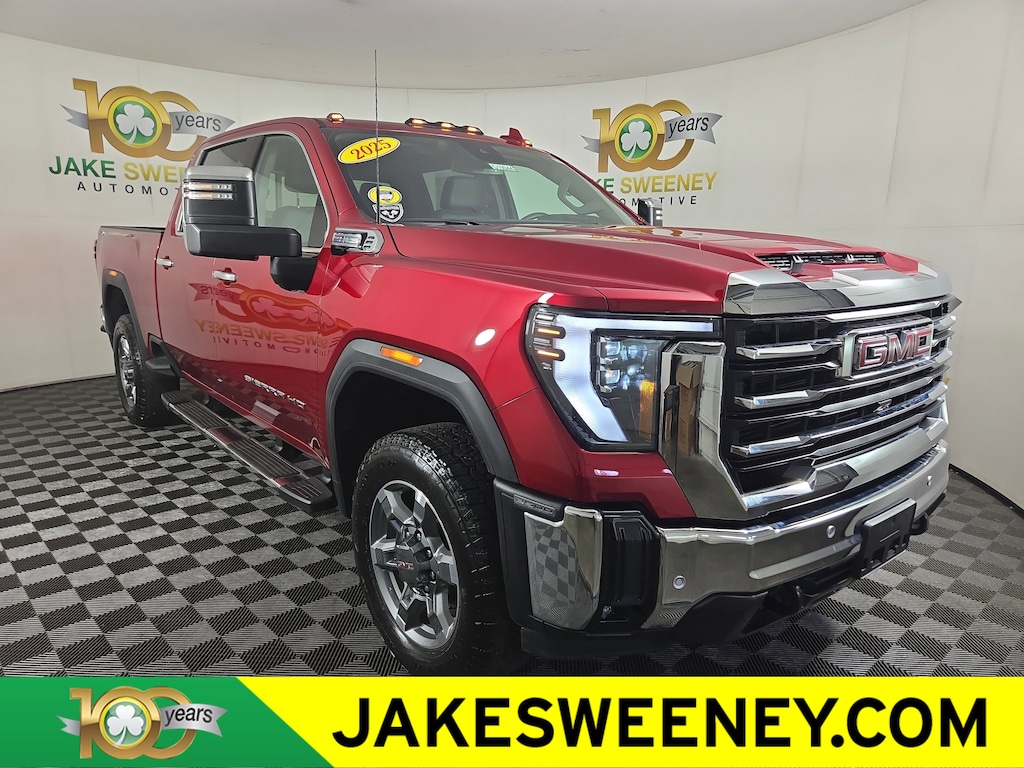Jake Sweeney Is Here to Help! If you are in need of a new or used vehicle, we are offering you the ability to shop online and have your vehicle delivered to your home. Volcanic Red Tintcoat 2025 GMC Sierra 2500HD SLT 4WD 10-Speed Automatic 6.6L V8 10-Speed Automatic, 4WD, Black Leather.