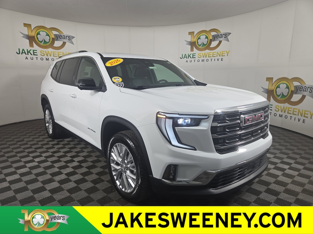 Jake Sweeney Is Here to Help! If you are in need of a new or used vehicle, we are offering you the ability to shop online and have your vehicle delivered to your home. Summit White 2026 GMC Acadia Elevation AWD 8-Speed Automatic 2.5L DOHC REMAINDER OF FACTORY WARRANTY, LIFETIME POWERTRAIN WARRANTY, SUNROOF, AWD, After Dark Cloth, 3-Channel Programmable Universal Home Remote, 6-Way Power Front Passenger Seat Adjuster, 7-Passenger Seating (2-2-3 Seating Configuration), 8" Diagonal Head-Up Display, CoreTec Seat Trim, Elevation Premium Package, Front Passenger Power Lumbar Seat Adjuster, Heated Rear Outboard Seating Positions, Heated Wiper Park, Laminated Acoustic Glass, Luxury Package, Preferred Equipment Group 4SD.Recent Arrival! Odometer is 1544 miles below market average!