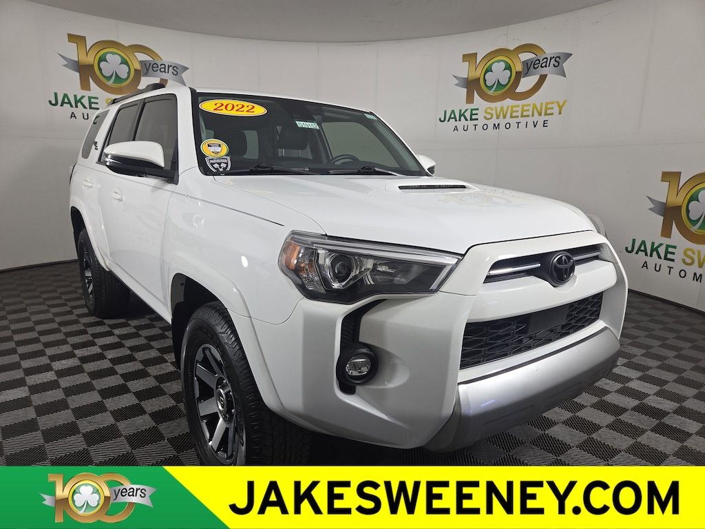 Jake Sweeney Is Here to Help! If you are in need of a new or used vehicle, we are offering you the ability to shop online and have your vehicle delivered to your home. White 2022 Toyota 4Runner TRD Off-Road Premium 4WD 5-Speed with ECT 4.0L V6 DOHC 24V LIFETIME POWERTRAIN WARRANTY, SUNROOF, SLIDING REAR CARGO DECK, 4WD, Black/Graphite Artificial Leather.